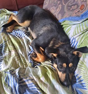 Junghund Jacky lebt in Rumänien mit seiner Mom bei einer Pflegestelle