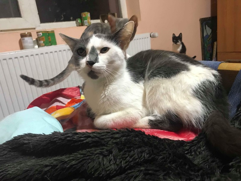 Arabella wurde von Tierschützern in der Nähe eines Supermarktes in Arad/Rumänien gefunden. Zusammengekauert lag sie völlig entkräftet in einer Ecke. In der Auffangstation für Katzen hat Arabella sich gut erholt….
